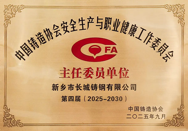 在會上,長城鑄鋼憑借出色表現(xiàn),成功入選第四屆中國鑄造協(xié)會安全生產(chǎn)與職業(yè)健康工作委員會主任委員單位。