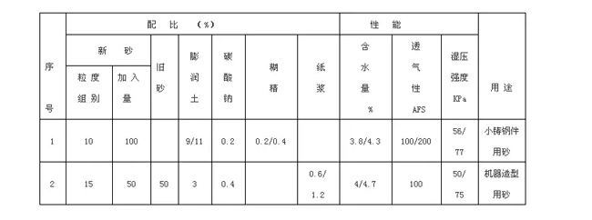 水玻璃CO2硬化砂配比及性能表: